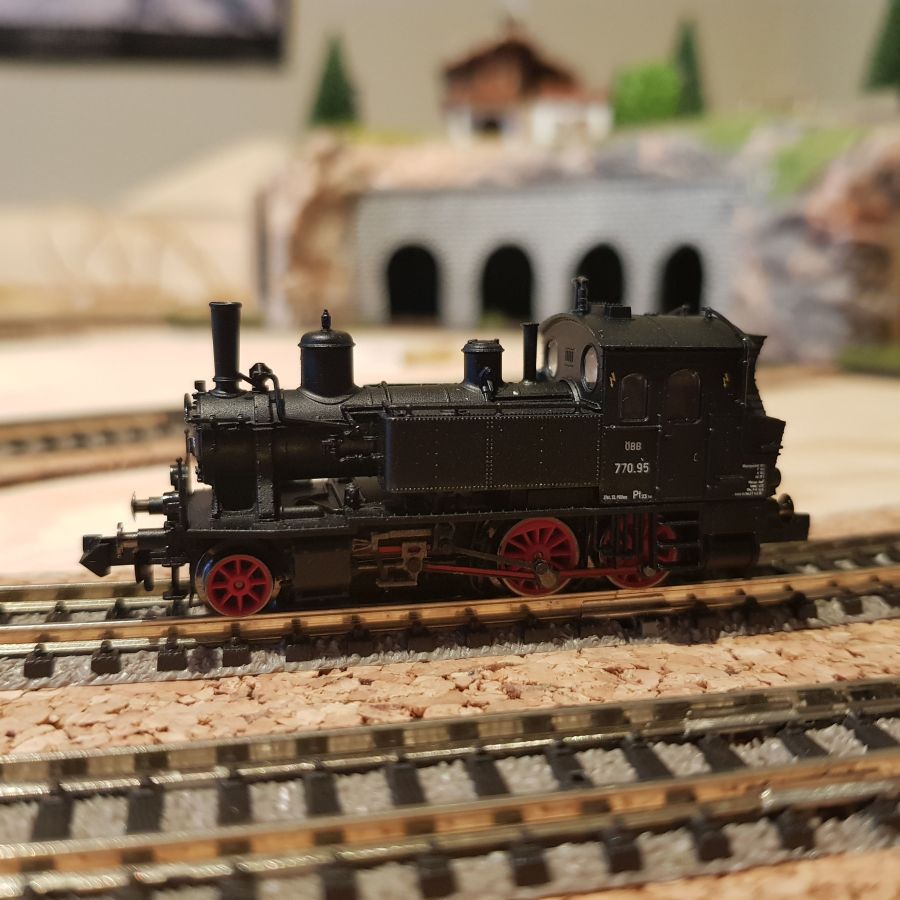 Schon zeitig in der Früh hat heute die Post an unserer Türe geläutet. Gebracht hat sie ein Paket mit meinem neuesten ‚Baby‘. Letzte Woche hatte ich eine ‚Dampflokomotive‘ bestellt. Nun ist sie eingelangt. Warum ‚Baby‘? – Die Länge über die Puffer beträgt ganze 58mm. Ganz vorsichtig nehme ich sie in die Hand und setze sie aufs Gleis. Bevor ich sie jedoch losfahren lassen kann, muss ich die ‚Lokadresse‘ programmieren. Gesagt getan und schon geht’s los.