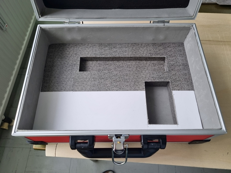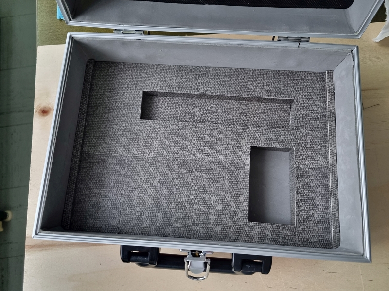 Mein roter Koffer – Koffer für meine Kofferbahn ‚SANTA FE‘. Ich habe ihn Ende Juni, anfangs Juli nochmals geöffnet, um ein bisschen weiterzubauen. Der Koffer ist nunmehr fertig ausgebaut. In die ‚Kleinstanlage‚ habe ich die Batteriehalterung, sowie die Ein-/Ausschaltdruckknöpfe installiert. Desweiteren sind nunmehr die drei Gebäude fertiggestellt. Als Nächstes steht der Bau des Tunnels an. Überlegungen dazu habe ich bereits angestellt. Leider verzögert sich die Lieferung des Motors für mein ‚SANTA FE‘-Gehäuse immer wieder. Der Liefertermin liegt jetzt schon im OKTOBER!