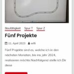 Im April habe ich eine Aufstellung über die von mir angedachten ‚Bahnprojekte‘ gemacht. ‚Fünf Projekte‘ habe ich mir vorgenommen, bis 2024, zu realisieren. Das Material dafür ist großteils schon vorhanden. Eigentlich wollte ich die ‚Bahnarbeit‘ in der ‚Sommerpause‘ gänzlich ruhen lassen – ist mir jedoch nicht ganz gelungen. Nun steht der Herbst vor der Tür und ich habe den ‚Status quo‘ meiner ‚Fünf Projekte‘ ermittelt. Das Ergebnis findest Du nachfolgend.