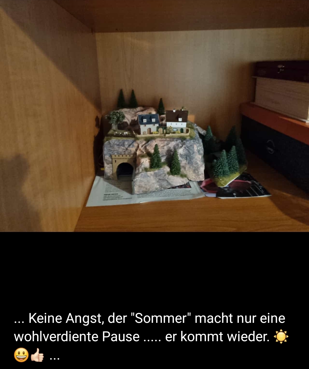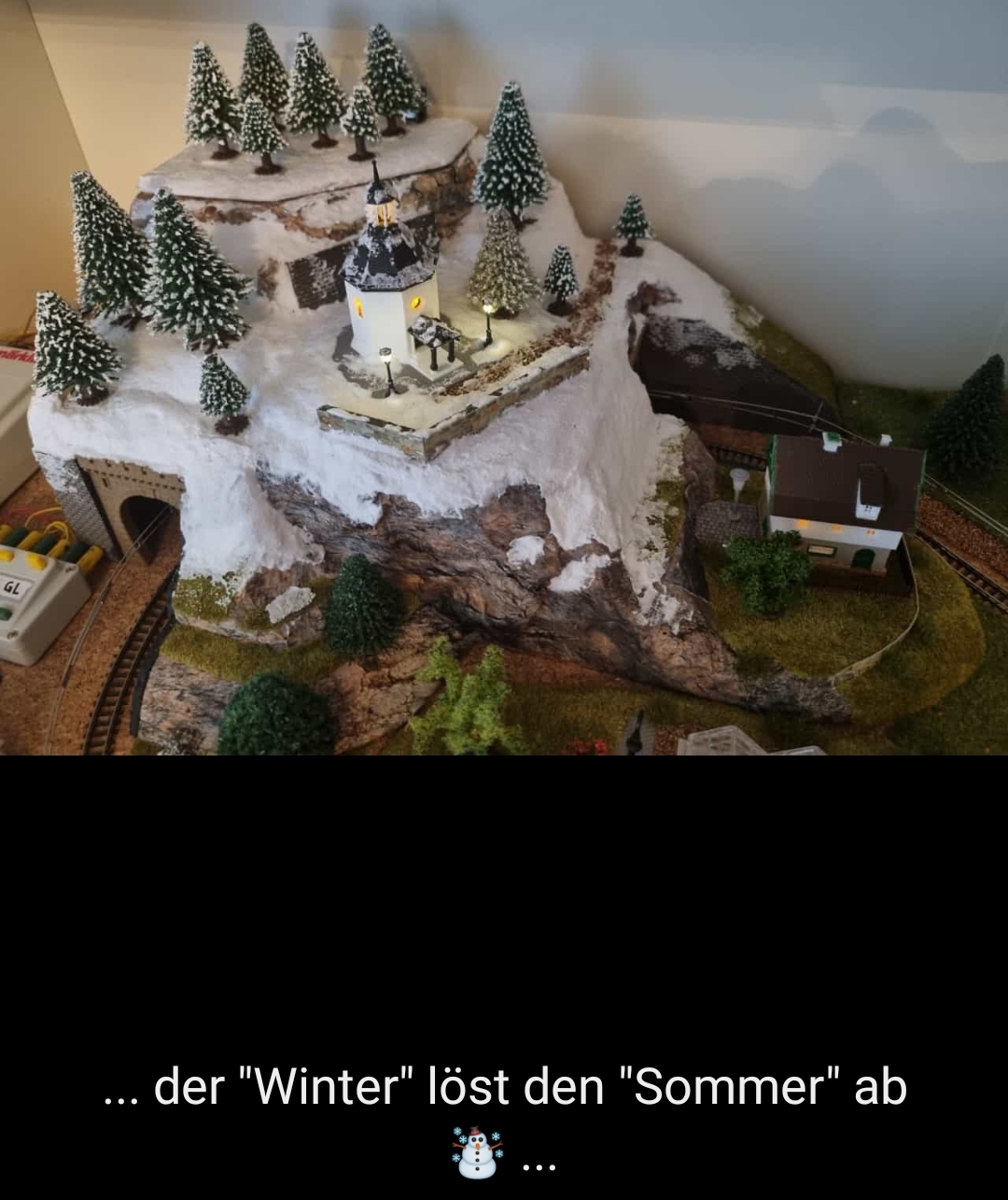 Analogbetrieb Fahrbetrieb Spur Z Es wird Winter 1. November 20231. November 2023 willi Am 1. November habe ich es auf meine MOBA-Anlage ‚REGionAL-Bahn Z‘ am ‚Sommerberg‘ schneien lassen. Der Winter hat Einzug gehalten. Ab nun befindet sich auf dieser Anlage mein ‚Winterberg‘, solange bis das Frühjahr wieder Einzug hält. Ähnliche Beiträge Digitalbetrieb Spur Z WLAN-Steuerung – NEU 17. August 202517. August 2025 willi Einkauf Fahrbetrieb Spur Z Zukauf ‚KiHa40‘ 11. Mai 202512. Mai 2025 willi