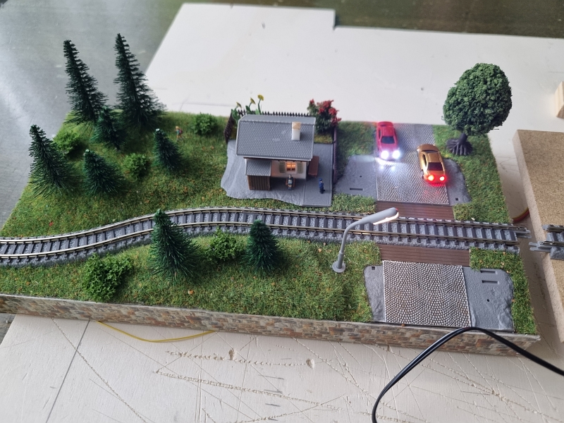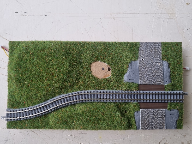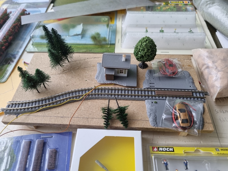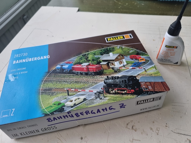 Da die erste Aprilhälfte mit herrlichem Wetter begonnen hat, habe ich mir eigentlich vorgenommen meine ‚Bahnbautätigkeit‘ nunmehr zu beenden. Raus in die Natur, den Sonnenschein genießen. Aber diese Woche war extrem schlechtes Wetter und somit habe ich nochmals ‚gebastelt‘. Ich habe mein zweites ‚Bahnbrettchen‚ gebastelt. Für meine Bahnbrettchenanlage – ‚Fleckerlteppich‘ – eigentlich das erste Bahnbrettchen. Den ‚Bahnübergang‘ von Firma Faller habe ich schon lange Zeit in meinem Kasten liegen. Nun wird er verbaut. Mein erstes Bahnbrettchen, für mich, benennt sich ‚BAHNÜBERGANG‘.