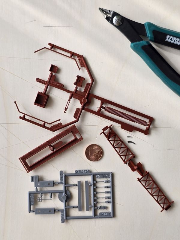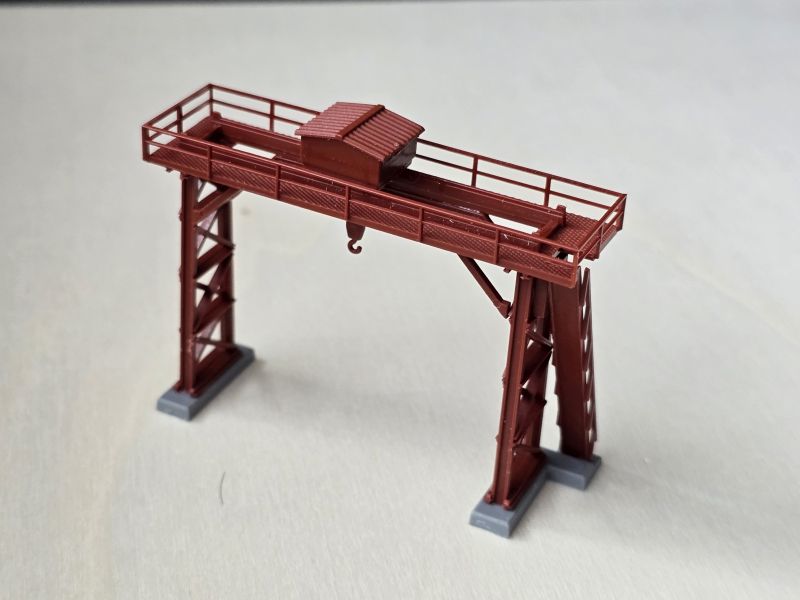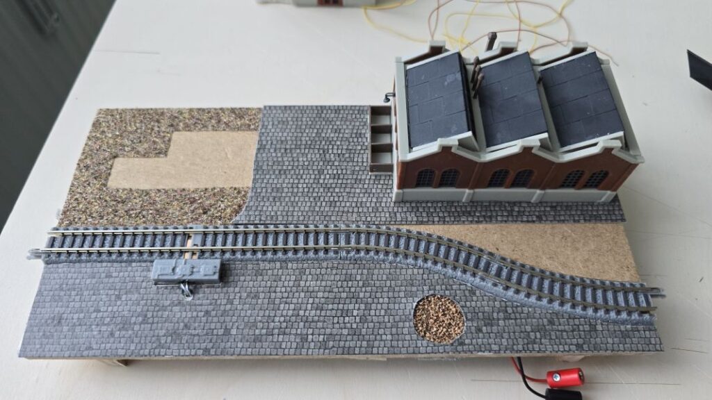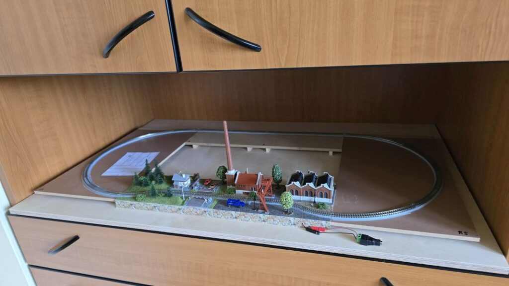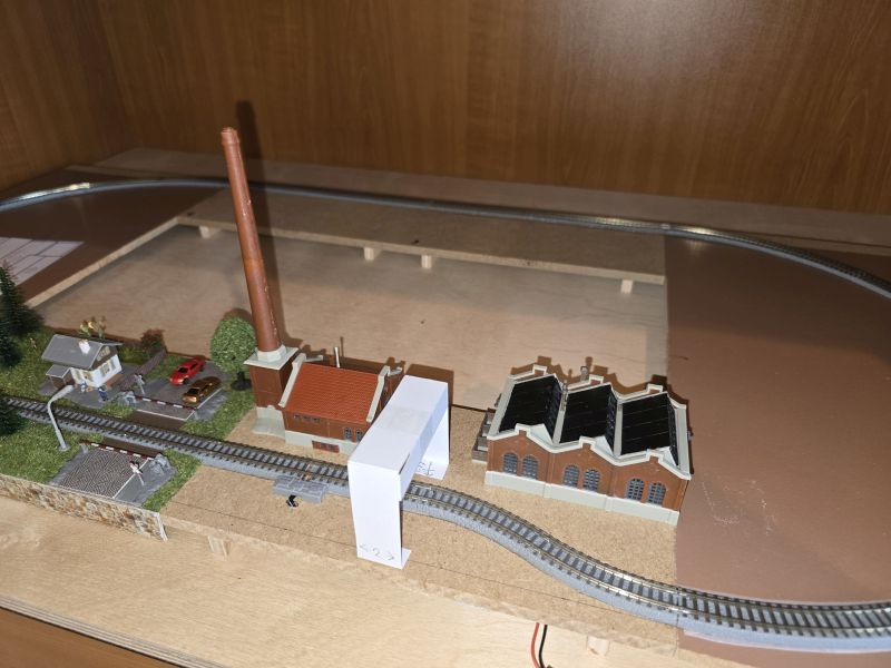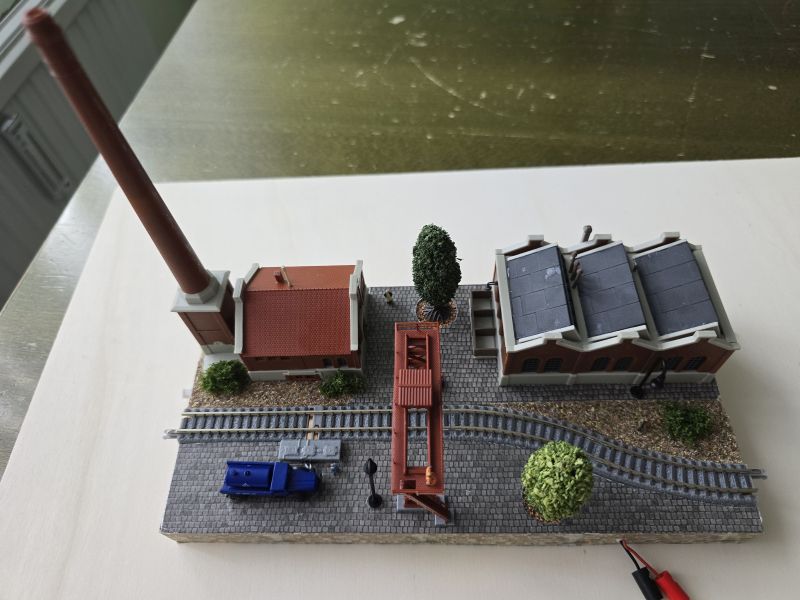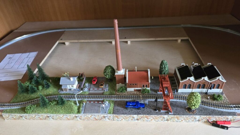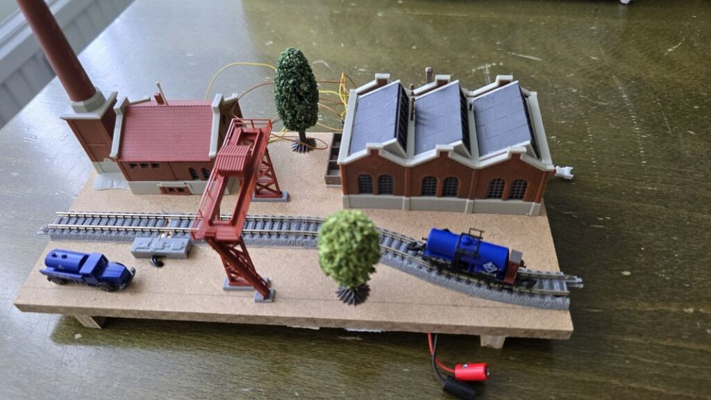 Schon im Juni 2024 habe ich meine ‚Fleckerlteppich-Bahn‘ auf DIGITAL (mit ‚WLAN-Steuerung‘) umgestellt und das ‚Anschlussbrettchen‘ entsprechend umgebaut. Im Juli 2024 habe ich dann die Gebäude für das ‚Anschlussbrettchen‘ bestellt. Den ‚KIBRI Überladekran‘ habe ich erst Ende März 2025 erhalten! Aber dann ist es losgegangen. Die beiden anderen Gebäude, nämlich die ‚Shedhalle‘ und das ‚Kesselhaus mit Kamin‘ hatte ich schon im Laufe des Jahres 2024 zusammengebaut. Nun erfolgte der Zusammenbau des ‚Überladekrans‘ und das ‚Anschlussbrettchen‘ wurde fertiggestellt. Es ist dies mein drittes ‚Bahnbrettchen‘ , eine FABRIKANLAGE – das zweite für meine ‚Fleckerlteppich-Bahn‘.