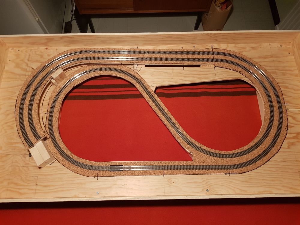 Jänner 2021 - Erste Änderung - Ein Bahnhofgleis weggenommen, damit genug Platz für den Bahnhof vorhanden ist.
