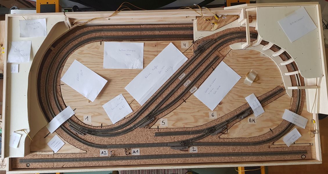 Februar 2021 - Letzte Änderung - Das Programmiergleis vorne wird in die Anlage integriert, bevor es mit dem 'Landschaftsbau' weitergeht.