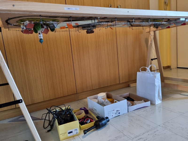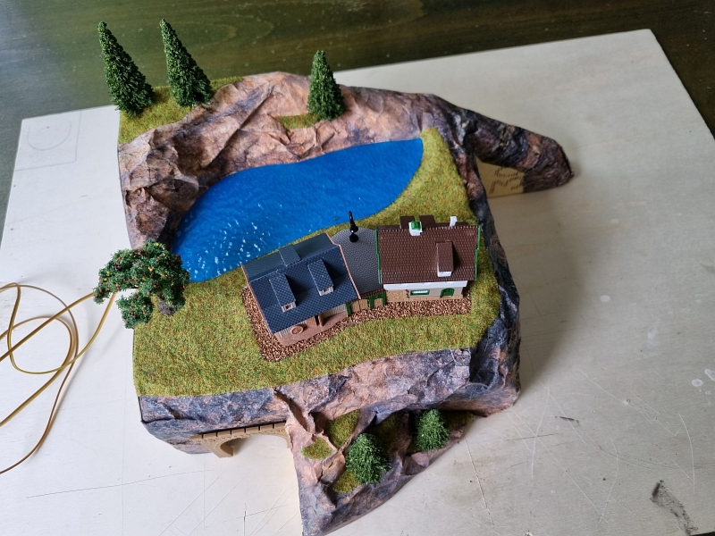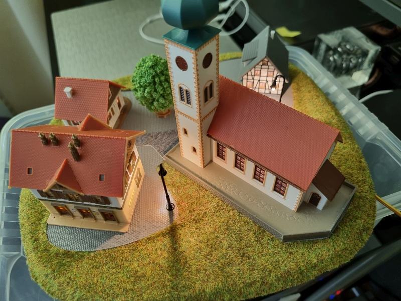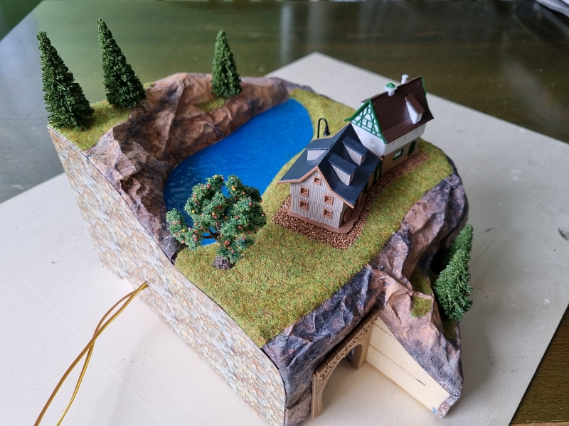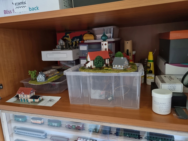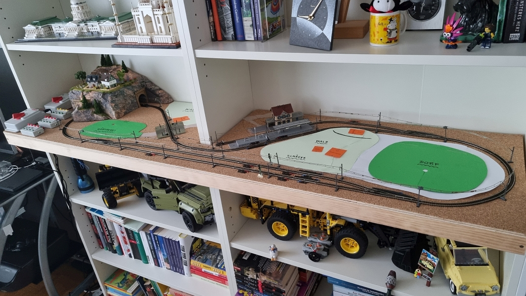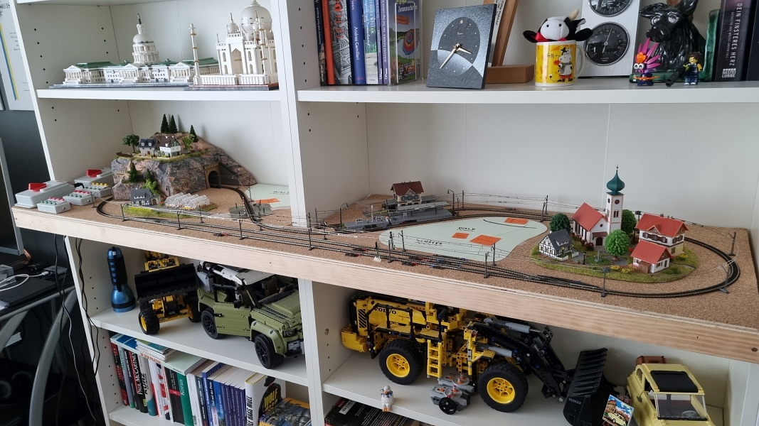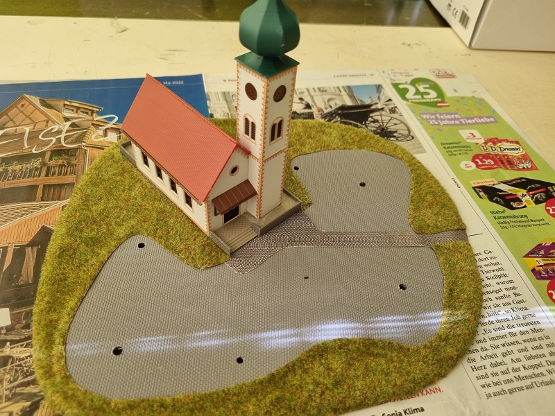 Nachdem die ‚Grundplatte‘ fertiggestellt war, habe ich mit dem Bau der einzelnen ‚Module‘ begonnen. Noch aus der Verpackung des ‚Startersets‘ ist ein Berg mit Tunnel, der sogenannte ‚Sommerberg‘, entstanden.Es folgte sodann der Bau der ‚Gärtnerei‚, des ‚Bahnhof’s und des ‚Dorf’s. Bilder davon nachfolgend: