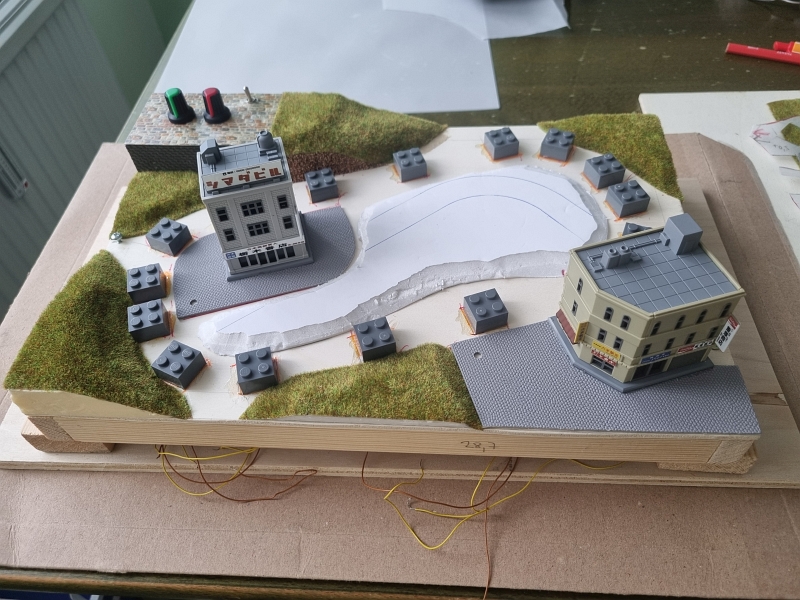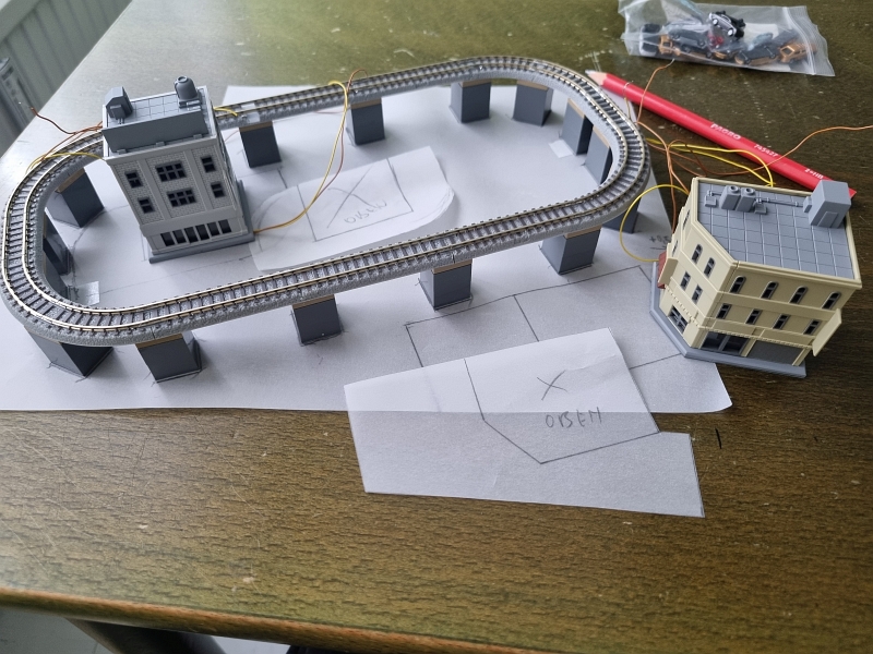Im Herbst 2023 ist es dann doch nichts mit dem Baubeginn geworden. Ich habe mich vorerst bis in den Jänner 2024 mit diversen anderen Projekten beschäftigt. Dies waren unter anderem: Fertigstellung von ‚Teeny-Weeny Train‘ (Spur T) – Bau von ‚resTl-bahn‘ (Spur T) – Bau von ‚Zug um Zug‘ und ‚The Londoner‘ (Spur T / Fine Scale) – Unterbringung von ‚Fleckerlteppich-Bahn‘ (Spur Z) – sowie Ausgestaltung meiner ROTEN KOFFERBAHN, ‚Santa Fe Express‘ mit Figuren.