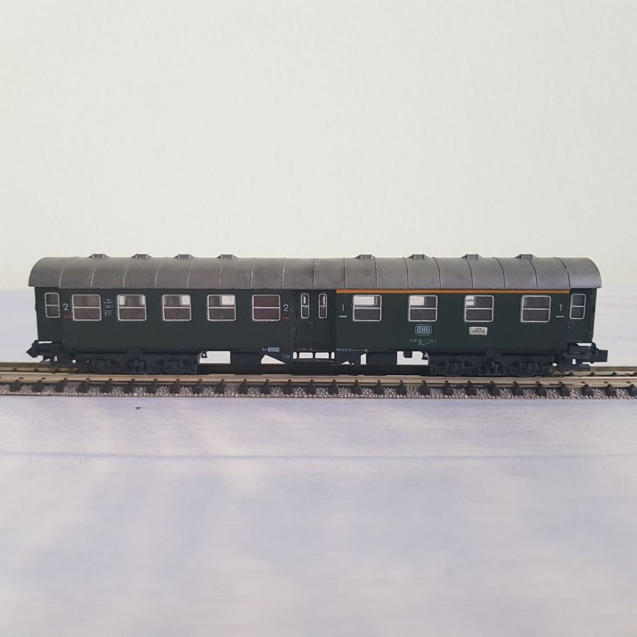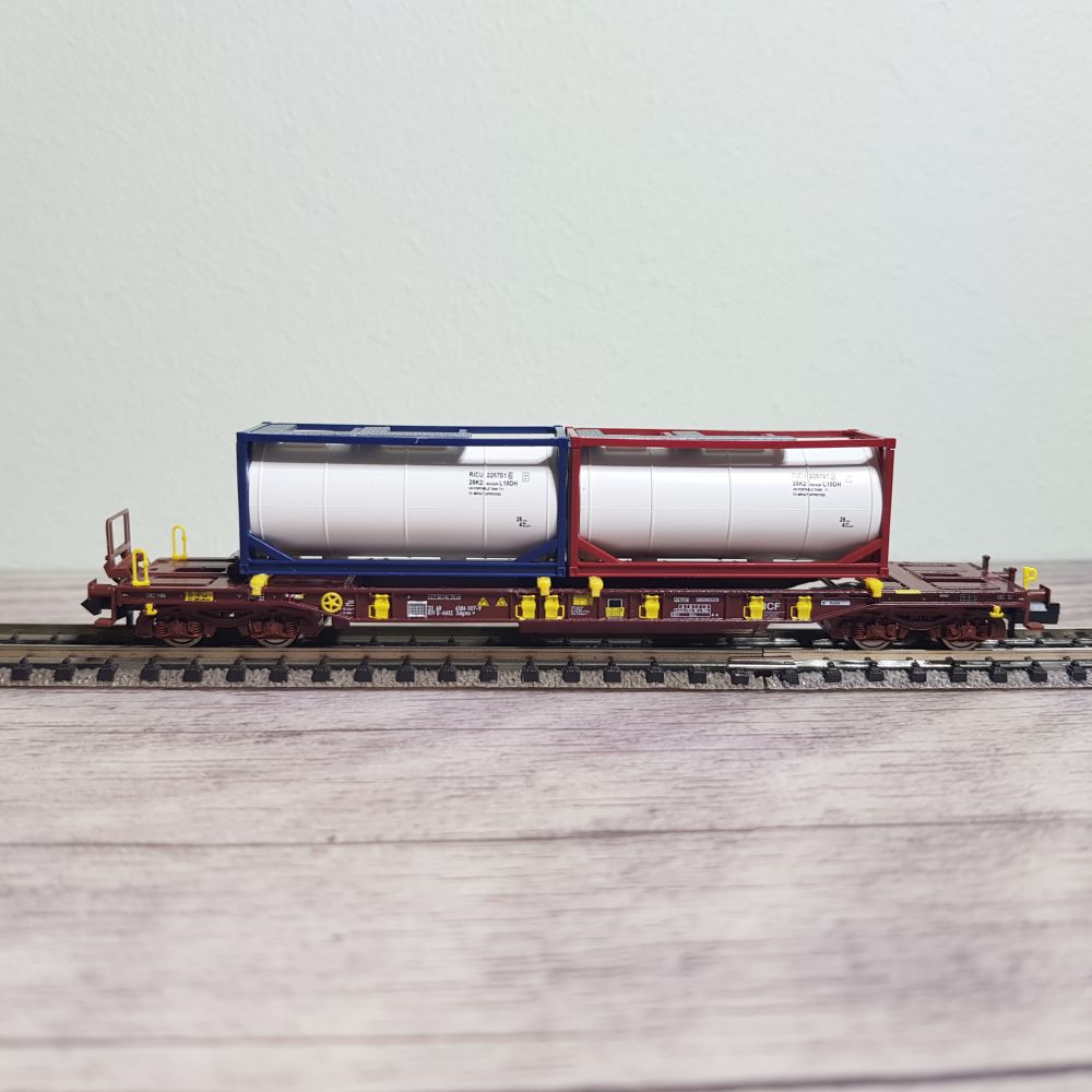 Hier findest Du meine Waggons vor. Begonnen habe ich mit einem‚Fleischmann-Starterset‘, welches bereits vier Waggons beinhaltet hat. Allerdings waren diese vier Waggons baugleich, nämlich ‚Taschenwagen T3‘. Weitere Waggons ’nach meinem Geschmack‘ sollen im Laufe der Zeit folgen.